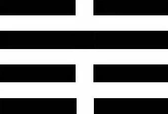 1a - 2a - 3a linea partendo dal basso - Trigramma della Terra:Sotto è posto il trigramma del Tuono che rappresenta lo stato di eccitazione a cui ogni essere vivente è sottoposto a causa di un avvenimento esterno molto forte, come il rumore che precede il lampo oppure uno chock. L'analogia è facilmente ricollegabile anche all'effetto di un'idea sul cervello umano.