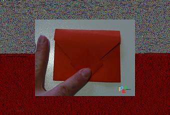 A questo punto piego l’angolo destro verso il centro, un pò oltre la metà per poi fare la stessa cosa con l’angolo sinistro così che la busta prenda una forma più definita. Ora piego la punta che si è venuta a creare verso sinistra e l’allargo infilandoci un dito così da poter poi appiattire l’angolino lungo la linea centrale; a questo punto basta abbassare il lembo superiore e introdurre il vertice nell’angolo appena creato. A questo punto mi basterà creare un bigliettino, magari bianco, delle dimensioni della busta, scriverci e inserirlo nella busta: di sicuro sarà più diretta e più esplicita che mai.