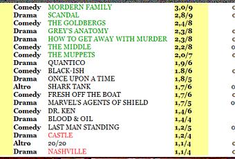 In linea generale, c’è stato un profondo calo. Colpiscono più di tutti i crolli di Scandal, Grey’s Anatomy, How To Get Away with Murder – non capite un accidente! -, The Muppets – il secondo episodio era anche migliore del primo! – e Black-ish. Fortuna vuole che rientrino comunque nella categoria degli show con gli ascolti migliori, quindi questo colpo, per il momento, ferisce solo il cuore.