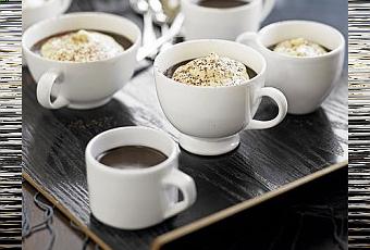 - Fate fondere il cioccolato a bagnomaria su fuoco dolce. Unitevi il caffe’ caldissimo e lo zucchero, mescolate e distribuite la preparazione in 4 tazze.
