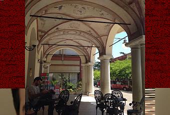A due passi dal castello di Riolo Terme, si trova il caffè del corso. Ammetto che veniamo attratti fondamentalmente dal portico perfettamente affrescato dove si trovano i tavolini estivi. Entriamo soltanto un attimo per ordinare un paio di spritz (3 euro) e rimango colpito dalla differenza di “luminosità”. L’ambiente mi ha dato l’impressione di essere abbastanza cupo ma forse è stata solo una "reazione" dovuta al sole. La proprietaria è molto gentile e ci porta l’aperitivo direttamente al tavolo con le immancabili patatine e noccioline. Forse nulla di particolarmente esaltante ma ammetto che sono stato bene e che probabilmente tornerei volentieri…