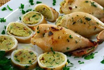 Iniziate col pulire bene i calamari e, nel frattempo, preparare una padella con olio, due spicchi d’aglio tritati e le alici tagliate a pezzetti. Appena queste ultime si saranno sciolte, aggiungere i tentacoli dei calamari ben sminuzzati e un po’ di vino bianco per insaporire. Intanto far ammorbidire la mollica di pane in acqua tiepida e, dopo averla strizzata, sbriciolarla nel tegame aggiungendo anche il prezzemolo tritato. Pochi minuti dopo, spegnere il fuoco e versare il tutto in una ciotolina in cui deve essere aggiunto il parmigiano e le uova. Mescolare bene fino a che il composto non sia diventato omogeneo e iniziare a riempirci i calamari. Chiudete ogni cappuccio con uno stecchino e mettere a cuocere in una padella con olio e due spicchi d’aglio per circa 10 minuti. Quando mancheranno una manciata di minuti, aggiungere del prezzemolo tritato sopra i calamari ripieni e la ricetta a quel punto sarà finita.