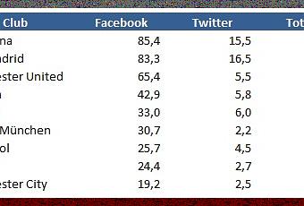 Secondo l'ultima analisi condotta da Forbes, Barcelona e Real Madrid hanno raggiunto (e, nel caso dei balugrana, superato) il tetto dei 100 mln di followers sui due principali social network (Facebook e Twitter).