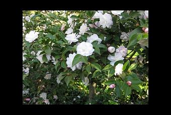 La pianta della camelia bianca fiorisce fra la fine dei freddi invernali e i primi tepori primaverili. Tuttavia alcune varietà ibride fioriscono in autunno e impreziosiscono i giardini durante tutta la stagione invernale. I suoi fiori sono così abbondanti che spesso celano gran parte del fogliame. Il diametro della corolla può raggiungere i dodici centimetri nei fiori più voluminosi oppure rimanere attorno ai sei centimetri. Alcune varietà sono caratterizzate da petali singoli mentre altre sono composte da così tanti petali da poter essere accomunate alle peonie. Le varietà più apprezzate sono quelle da giardino: resistono alle alte e alle basse temperature. Se messe a dimora in terra possono raggiungere i tre metri mentre in vaso difficilmente superano i due.