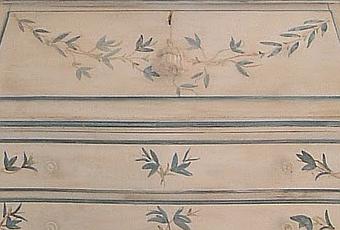 naturalmente era di un marrone scurissimo e tristepoi imbiancato e decorato da me...anche in questo caso mi sarei fermata ad una patinama ormai..avevo seguitola padrona di casa e anche il risultato non mi parve così male...anzi mi piacque era il mio stile personale che si andava affermando...