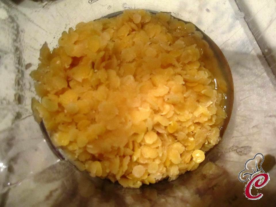 Fate bollire le lenticchie, precedentemente sciacquate sotto un getto di acqua. Salatele leggermente e fatele intiepidire.