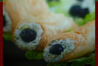 una volta ben freddi farciteli con il composto di ricotta decorate i due lati con mezza oliva nera e servite