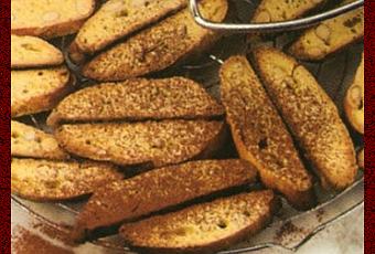 - Infornate i rotoli di pasta per 20-25 minuti. Sfornate e fate intiepidire. Tagliate i rotoli in diagonali, ricavando biscotti dello spessore di circa 6 mm. Infornate di nuovo e fate biscottare 10 minuti. Sfornate e fate raffreddare