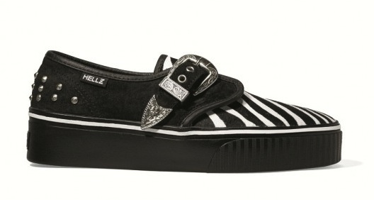 La liason, già testata con successo nella primavera 2010, propone questa volta linee dal gusto decisamente retrò, in perfetto stile anni '80 (scrape Rockabilly). Pelle e tessuti dalla texture zebrata, impreziositi da borchie e fibbie argentate.
