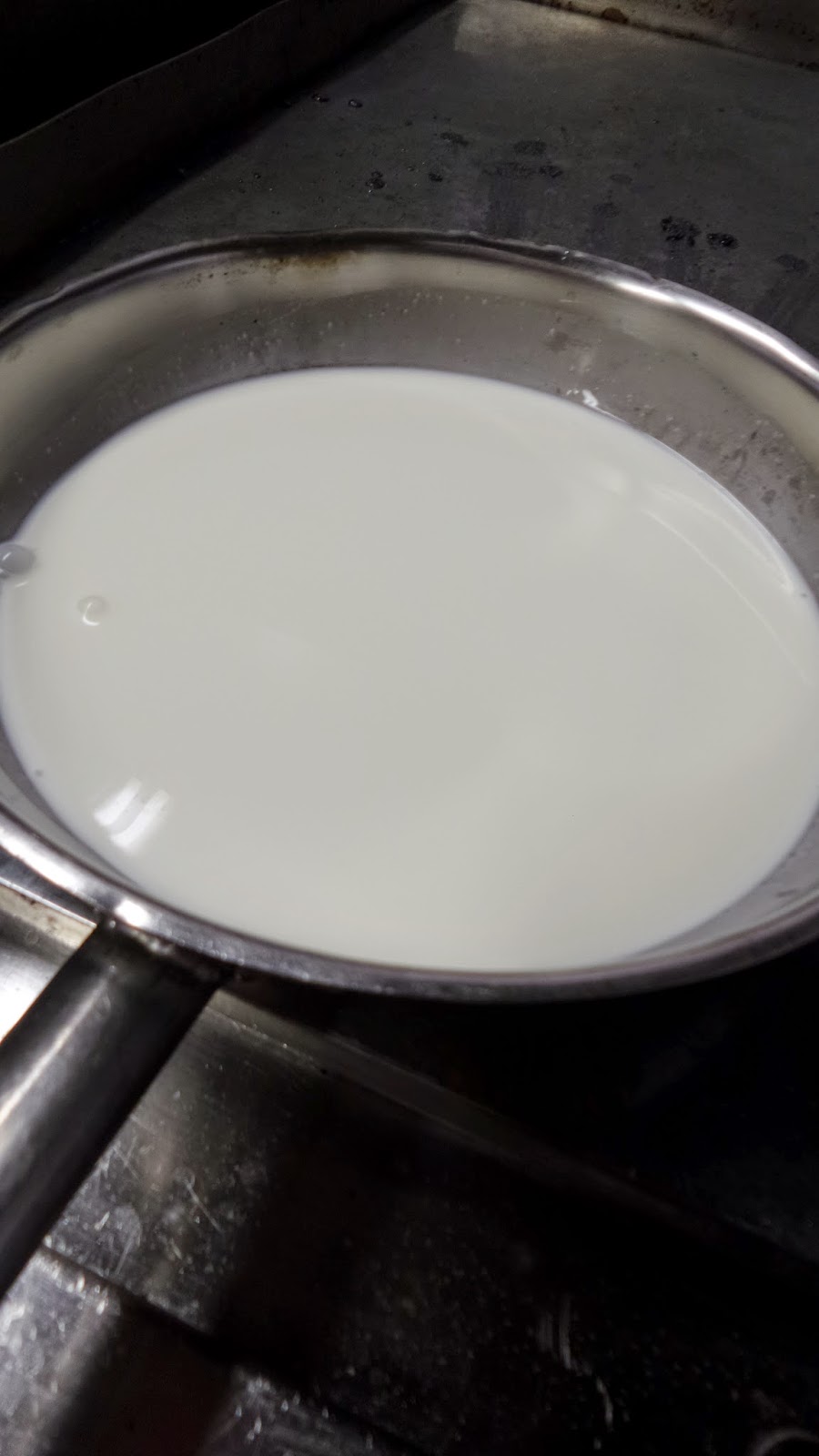 toglierlo immediatamente dal fuoco ed aggiungervi, subito dopo, la panna bollente un cucchiaio per volta