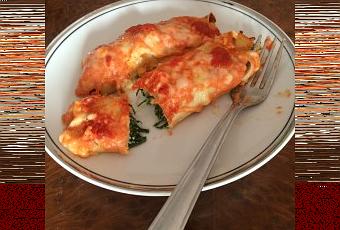 Preparare adesso il ripieno. Pulire e lavare gli spinaci, farli lessare, strizzare e metterli in una ciotola. Una volta freddi, tritarli con un coltello, unire la ricotta e il parmigiano(lasciandone 3 cucchiai per cospargere le crepes), amalgamare e aggiustare di sale, aggiungere un po’ di noce moscata grattugiata. Riempire le crepes con il composto, arrotolarle e disporle in una teglia imburrata, coprirle con il sugo di pomodoro mescolato con la besciamella, cospargere di parmigiano grattugiato e mettere in forno per 20 minuti a 180°.