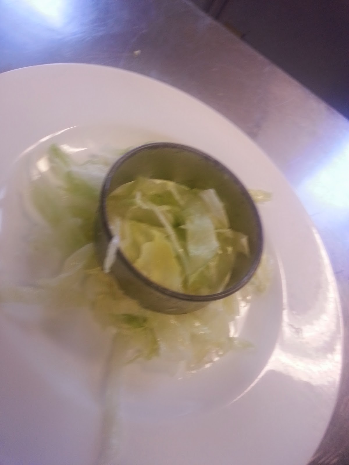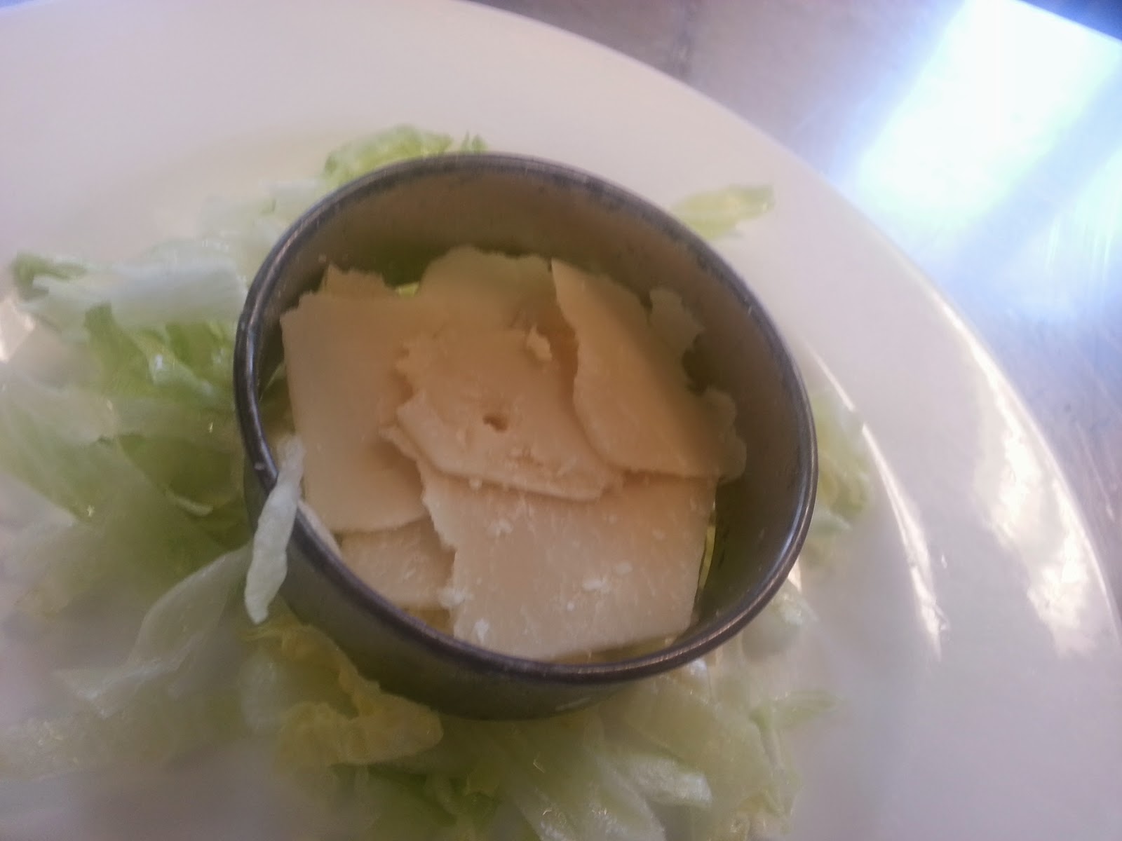 Ma come è buona e semplice questa insalatina da degustare con un fluit di prosecco,ve la raccontoIn un piattoposizionateci una manciata di insalatina iceberg tagliata sottilmentemettete un tagliapasta da 10 cm di diametro o più piccolo o più grande, come fa comodo a voie iniziate a mettere uno strato di fettine di parmigiano tagliate con o un pelacarote o con l'apposito attrzzopoi ci tagliate con il mandolino del tartufo nero, o comprate le fettine di tartufo sott'olio che non sono uguale al fresco ma può sostituirlo.Poi mettete un po di sedano tagliato molto sottile, il cuore del sedano è l'idealericoprite con altre fettine di parmigiano, e pressate leggermentetogliamo il tagliapastae infine altre lamelle di tartufo e un filo d'olio,