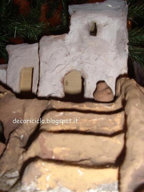 Sono situate su una roccia nella quale è "scolpita" anche la scala di accesso. La roccia è fatta sempre con una sfoglia di Das bianco, adagiata su della carta di giornale appallottolata. Ad asciugatura avvenuta l'ho colorata con diverse tonalità di marrone.