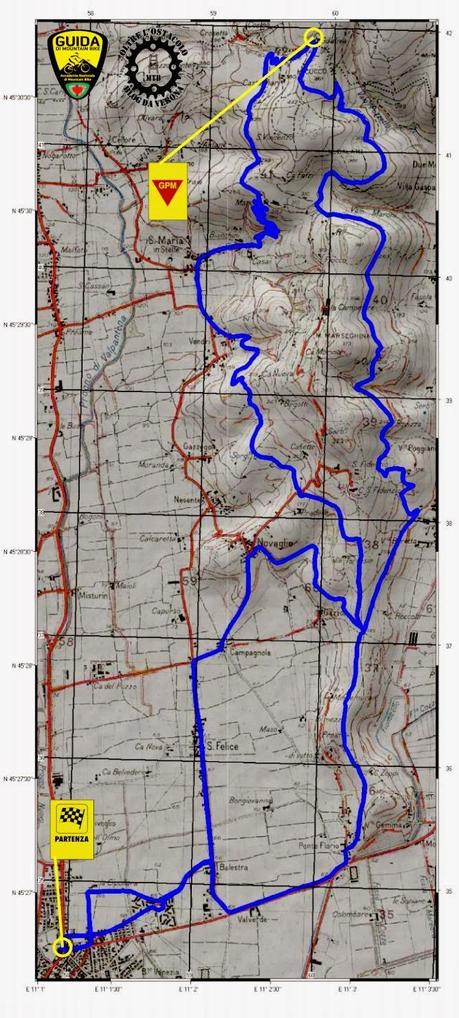 Da Verona, Ponte Florio, Forte Preara, San Fidenzio, Casa Rosa, Piccolo Stelvio, Gualiva, La Corda, Maroni, Piloton, Fontana delle Streghe, Novaglie, S.Felice, Verona. Da Gualiva alla Corda scendo a velocità Stukas. Mi preparo a dare l'accellerata nel breve strappo conclusivo quando m'accorgo che un tratto di circa 30 cm è franato verso l'esterno. Poco salutare tentare il passaggio da soli, cadere nel vuoto a sx non sarebbe piacevole. Quindi mi appoggio sulla dx e prendo la corda. Brevissimo tratto a piedi e riprendo a pedalare. Dopo la Fontana delle Streghe incontro Matteo Ederle, reduce dell'Enduro Day nella mattinata, con le Teste di Marmo. Qualche ciacola e poi riparto. Arrivo a Verona e chiudo con 27 km e 619 mt di dislivello.