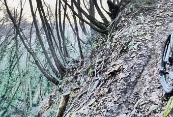 Da Verona, Ponte Florio, Forte Preara, San Fidenzio, Casa Rosa, Piccolo Stelvio, Gualiva, La Corda, Maroni, Piloton, Fontana delle Streghe, Novaglie, S.Felice, Verona. Da Gualiva alla Corda scendo a velocità Stukas. Mi preparo a dare l'accellerata nel breve strappo conclusivo quando m'accorgo che un tratto di circa 30 cm è franato verso l'esterno. Poco salutare tentare il passaggio da soli, cadere nel vuoto a sx non sarebbe piacevole. Quindi mi appoggio sulla dx e prendo la corda. Brevissimo tratto a piedi e riprendo a pedalare. Dopo la Fontana delle Streghe incontro Matteo Ederle, reduce dell'Enduro Day nella mattinata, con le Teste di Marmo. Qualche ciacola e poi riparto. Arrivo a Verona e chiudo con 27 km e 619 mt di dislivello.