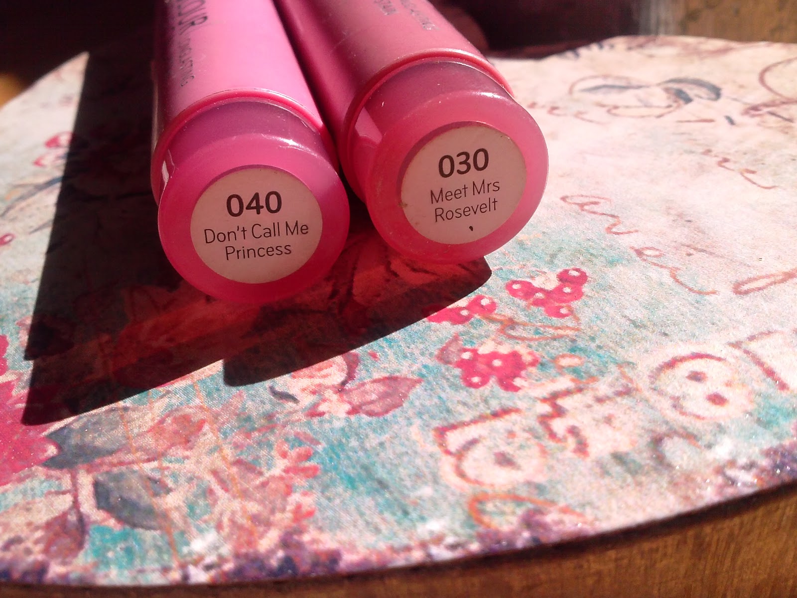 In realtà per me avevo scelto una sola tinta, la numero 040, ma siccome a mia madre non piaceva molto quella che aveva preso per se' (la 030) l'ho adottata io, e ora ne ho 2. La prima, la 040 "Don't Call Me Princess" è un rosa... bhe, rosa! Il classico colore delle matite e dei pennarelli, quello dei vestiti da principessa e delle facce disegnate dai bambini, convinti che sia normale avere la faccia più o meno fosforescente. La seconda, la 040 "Meet Miss Rosevelt" è un rosa antico a base calda, molto naturale. Il packaging secondo me è fantastico: un vero e proprio pennarello che fa sorridere (e ai controlli in aeroporto passa inosservato tra matite e penne negli astucci ;) ) e riprende il colore della tinta all'interno, seppure con qualche riserva.