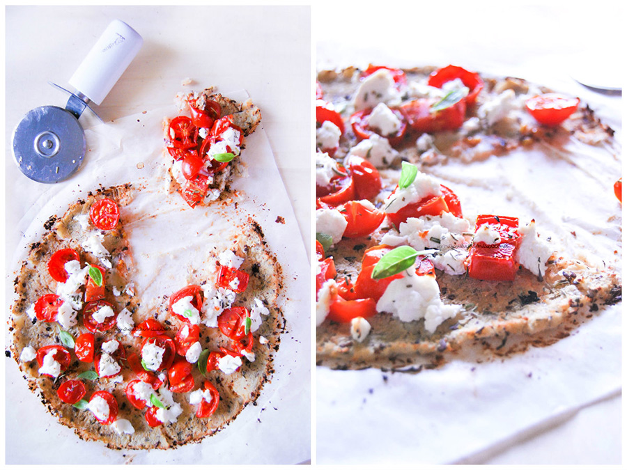 Ecco la 2° versione, riveduta e corretta da me in chiave vegana della pizza con la base di cavolfiore, che avevo già provato qui, seguendo una ricetta scovata su Pinterest.