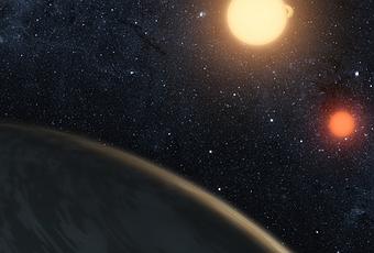 Una rappresentazione artistica di Kepler-16b, un pianeta in orbita attorno a due stelle. Crediti NASA