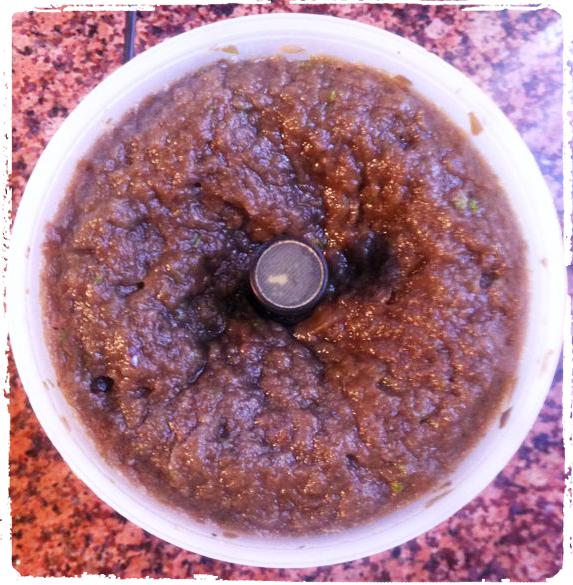 - Frullate le melanzane con decina di foglie di basilico fresco