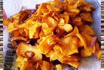Le patatine fritte fanno da contorno a qualsiasi cosa, stanno bene con quasi tutto, ma cosa ne pensate per una volta di tagliare sottile sottile una patata dolce, di friggerla e presentarla per l'aperitivo?Niente sale, niente zucchero. Così come sono.