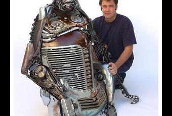 Le sculture di Corbett sono fatte con cambi, candele, radiatori, scappamenti e qualsiasi pezzo che l’artista riesce a recuperare