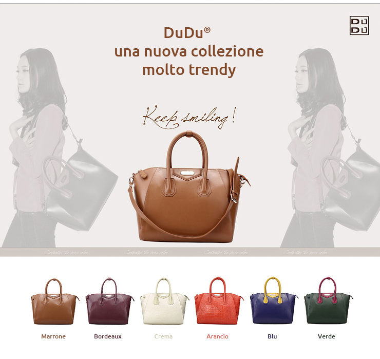 Non è semplice trovare un'alternativa valida a borse da sogno, spesso mi imbatto in copie mal fatte e dai tessuti improbabili, ormai sono in fissa per l' antigona Givenchy Bag e davvero trovare un'alternativa decente a questa Signora borsa è stata impresa non da poco, avevo già sentito parlare di DuduBags ma fino ad oggi me l'ero dimenticato in qualche angolino della mia testolina, ed ecco dopo vano cercare mi vengono in mente loro e si ... ce l'hanno! L'alternativa alla Borsa con la B maiuscola si chiama Keep Smiling ! Devo solo aspettare che la rimettano in produzione nel colore arancio !!! Fate presto!!! ;)