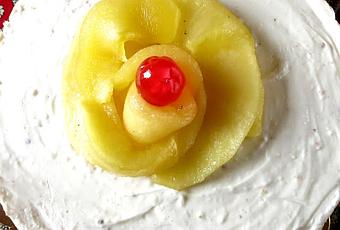 Al momento di servire il dolce ( che può essere preparato anche con largo anticipo disporre le fettine di mela corona e decorare con una ciliegina candita...
