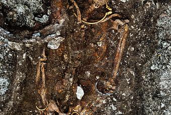 Al momento non è ben chiaro se il defunto fosse un uomo o una donna. Evidenti sono gli ornamenti con i quali è stato sepolto: una torque d'oro di 580 grammi di peso, due braccialetti d'oro, una polsiera in lignite. Questi oggetti somigliano a quelli trovati nella tomba di Reinheim, al confine tra Germania e Francia. Vicino al teschio del defunto sono state trovate diverse sfere d'ambra finemente lavorate. Gli archeologi sono riusciti a raccogliere anche frammenti di vestiti e di scarpe (alle quali appartenevano anche una fila di chiodi ugualmente presenti nella tomba) ed anche un gancio in corallo.