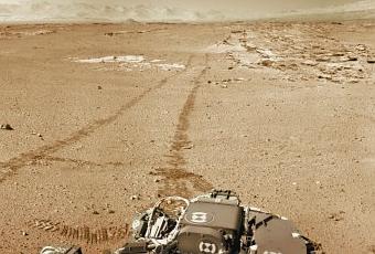Il rover Curiosity guarda verso il cratere Gale e il Monte Sharp. Foto scattata nel sol 548. Credit: NASA/JPL-Caltech/Ken Kremer- kenkremer.com/Marco Di Lorenzo