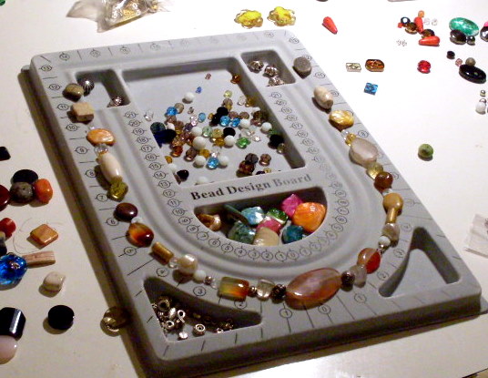 Nel post Perlette e Bead Board invece disquisisco sull'utilità della Bead Board nella creazione di collane e bracciali e rivelo la tecnica con cui creo la maggior parte dei miei bijoux.... (nella versione aggiornata ho anche incluso i link alle immagini della collana finita, che avevo cominciato, appunto, sulla mia "tavola da perlette")