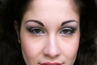 Per prima cosa, applicate una base cremosa bianca shimmer sulla palpebra mobile (Lip-eyeshadow pencil Chresy, n°111, 3,00 euro circa), ma consiglio di stendere prima un primer occhi, se avete problemi di palpebra oleosa!Fatto questo, colorate con un bianco mat l'angolo interno (Ombretto ad alta pigmentazione Kiko, n°32, 3,00 euro ai saldi), e con un argento shimmer (Ombretto ad alta pigmentazione Kiko, n°31, 3,00 euro ai saldi) la seconda metà di palpebra. Create adesso la v esterna scura, non troppo drammatica, con un ombretto nero opaco (io ho usato quello della palette Sleek Sparkle, ma va bene qualsiasi nero pigmentato): per questa delicata operazione consiglio, come al solito, un pennellino a penna corto e non troppo morbido (quello della Yves Rocher è perfetto, l'ho pagato 9,90 euro, se non ricordo male), così da dosare bene il colore e sfumare con attenzione nell'incavo. Lasciate che il nero sia più intenso nella zona dell'incavo.