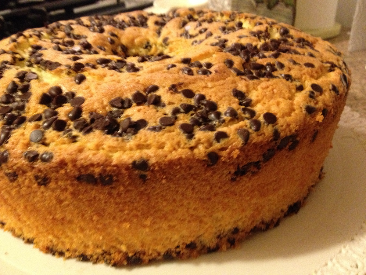 270 g zucchero, 180 g farina, 50 g fecola di patate, 100 g farina di cocco, 6 uova, 50 g olio evo, 2 fialette aroma vaniglia, 1 bustina di cremor tartaro, 200 ml latte di cocco (o acqua), 1 bustina di lievito x dolci, 150 g gocce di cioccolato.