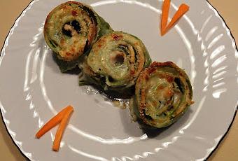 Preparazione: Incominciamo dalla pasta, disponiamo la farina a fontana sul tavolo aggiungendo l’uovo, gli spinaci lessati, spremuti e passati al mixer, il sale e l’acqua aggiunta poco alla volta. Amalgamiamo bene il tutto, formiamo una palla e la lasciamo riposare coperta mentre prepariamo il resto. Tagliamo a fette la zucchina e la mettiamo in una teglia in forno per una decina di minuti.