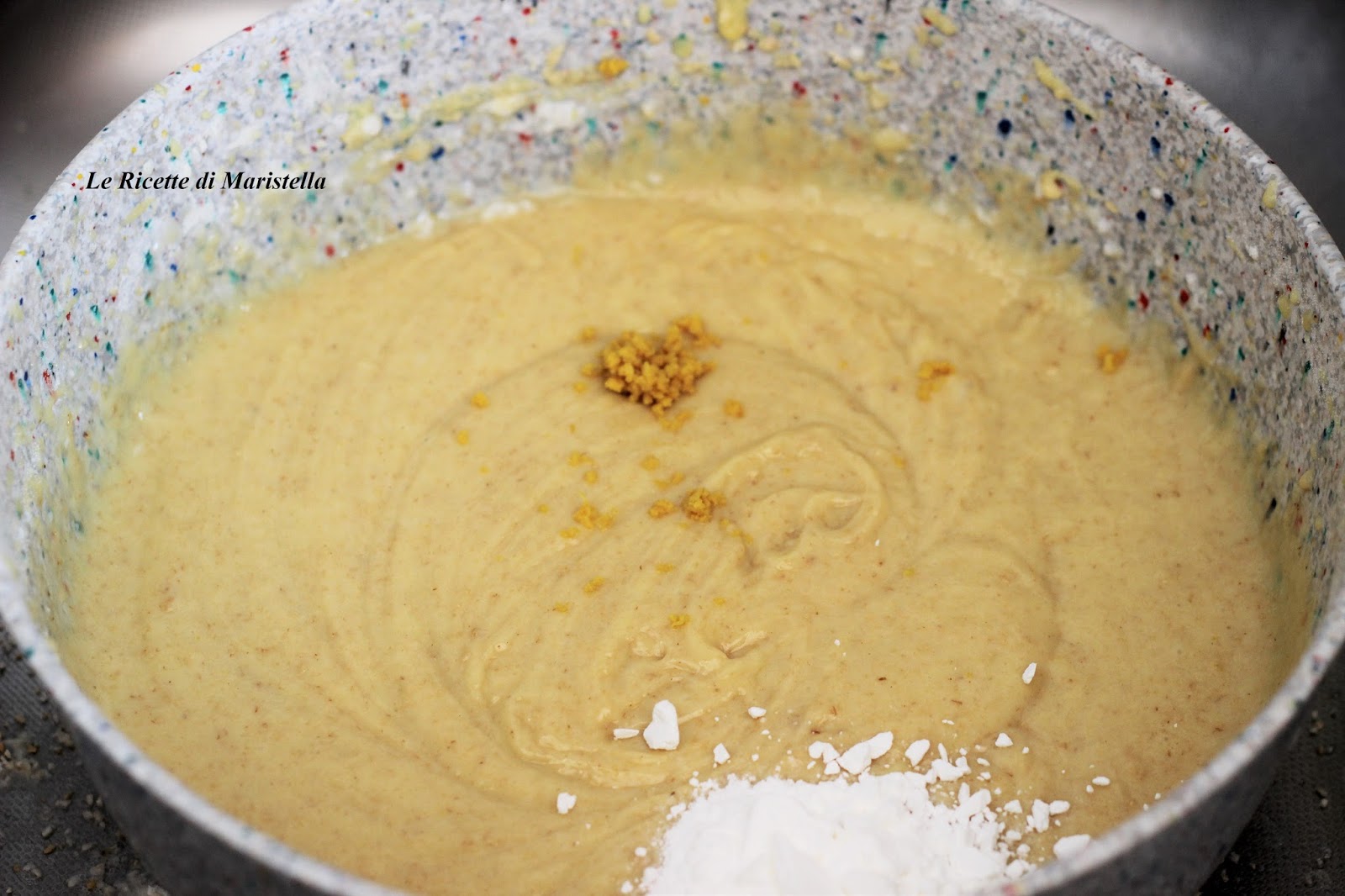 Aggiungete la scorza di limone ed il lievito e mescolate ancora.