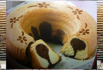 versate il coposto in uno stampo da ciambella precedentemente quindi unite l'impasto al cacao e con un coltello fate delle spirali in modo da ottenere un impasto variegato