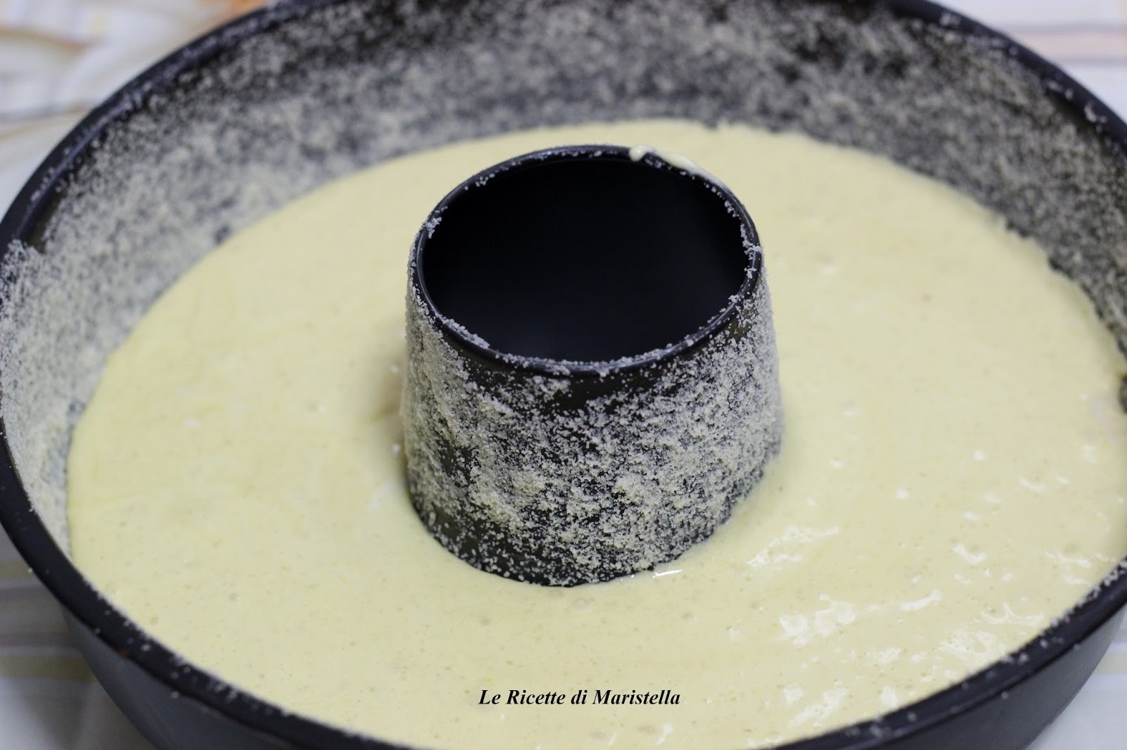 Versate l'impasto in uno stampo precedentemente imburrato e infarinato con la farina di mandorle.