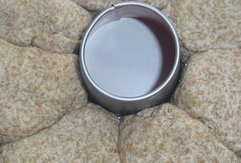 6) Impastate ogni parte, fate una forma a palla e mettetela all’interno dello stampo da ciambella (con la cerniera è l’ideale). Mettete tutte le palline per completare la forma a ciambella.