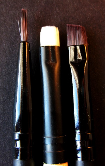 Io personalmente ho provato tutti i pennelli che vedete nella foto qui sopra e, devo ammetterlo, li uso tutti, ma preferisco il pennellino a punta fine sulla sinistra.