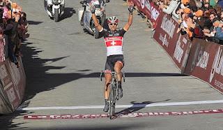 Si susseguono prima della salita vera e propria una serie di scatti e controscatti, che portano il belga Van Avermaet ad attaccarla in testa, seguito a pochi metri da Cancellara. Sul tratto più duro lo svizzero aumenta il ritmo e nessuno riesce a stargli dietro: Gatto, Ballan, Van Avermaet e Iglisnskiy devono arrendersi. Il vantaggio è dapprima di pochi secondi, salvo salire nei chilometri successivi. Il diretto di Berna è puntuale e veloce, quando arriva a tagliare il traguardo superando indenne il muro finale, sul quale si scatena la bagarre per la piazza d'onore. Gatto riesce a domare al meglio le pendenze più impegnative, arrivando per primo all'ultima curva, che affronta però con un troppa prudenza, permettendo a Iglinskiy, già una volta vincitore della corsa, di infilarlo all'esterno per guadagnare la seconda posizione. Quarto, staccato di pochi metri, un buon Ballan.