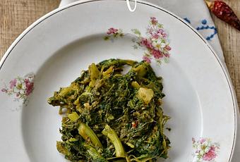 preparazioneMondate le cime di rapa,eliminando i gambi duri e conservando le cime e le foglie più tenere.Lasciatele a bagno per un po' di tempo, quindi trasferitele in una casseruola.Mettetele sul fuoco a fiamma moderata e lasciatele stufare nella loro umidità.Emetteranno dell'acqua ...eliminatela perché è amara.Quando non rilasceranno più liquido, aggiungete l'olio di oliva,i due spicchi di aglio spelati e tagliati a lamelle,il pomodoro,i filetti di acciuga tritati,il peperoncino sbriciolato,il vino e salate.Fate cuocere per almeno 15 – 20 minuti.