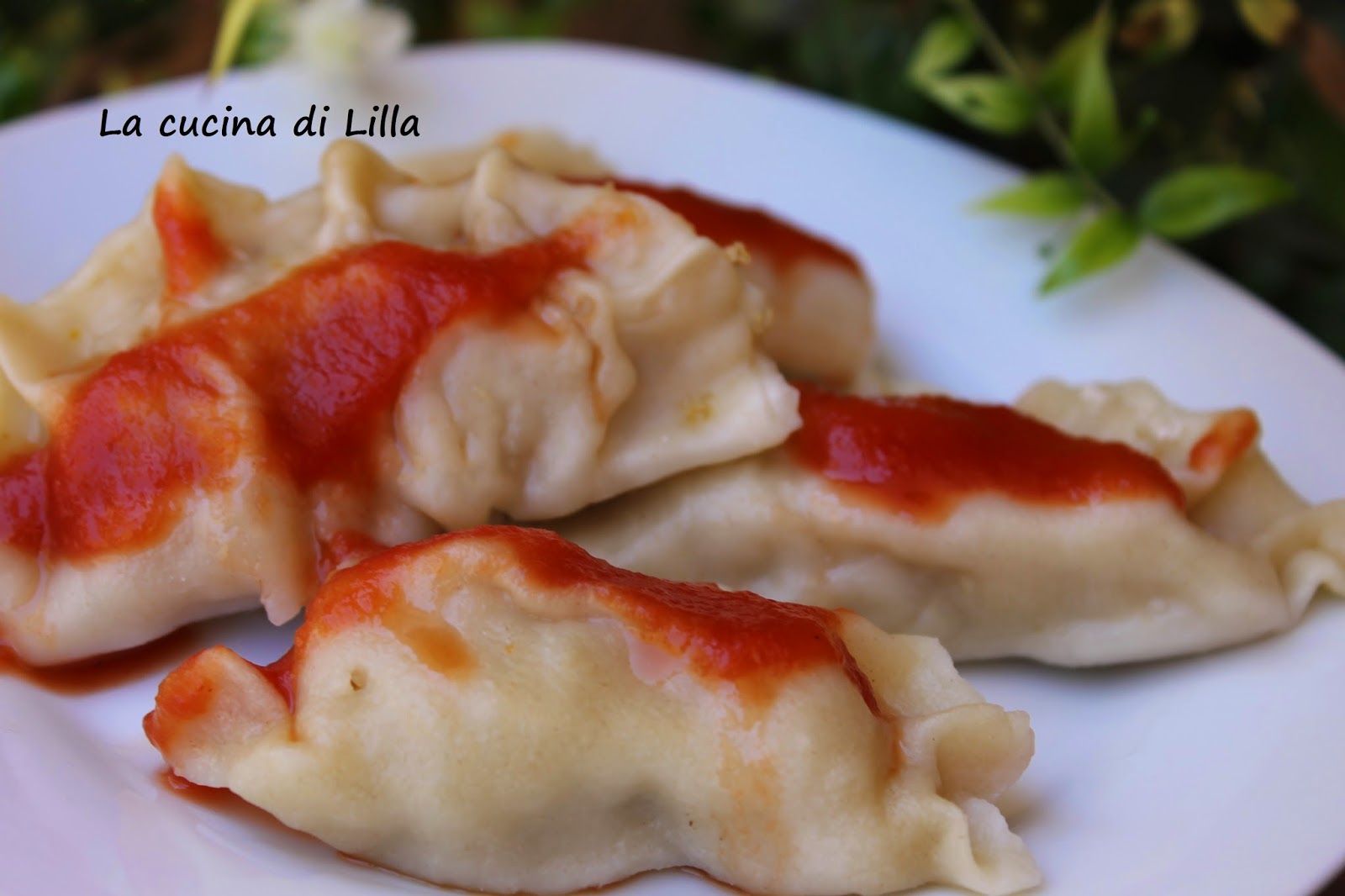 Stendere la pasta su una spianatoia infarinata o usate la macchinetta per la pasta (la pasta non dovrà essere troppo sottile). Ricavare dei dischi di circa 7/8 cm.