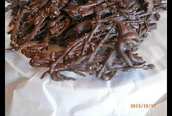 Lasciate asciugare per un paio d'ora e poi togliete il cioccolato dalla carta da forno, tagliando a piccoli pezzi. Oppure pezzi medi.