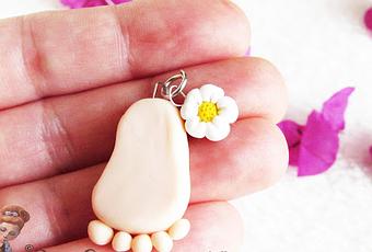 L'idea di realizzare questo ciondolo è nata un giorno per caso, per strada mentre vedevo un piedino nudo di un bimbo bellissimo, ed ecco che nacque nella mia mente il ciondolo baby, ideale come ciondolo collana, bracciale, portachiavi, ciondolo alla culla, insomma un ciondolo carino e simpatico adattabile ovunque per la sua semplicità e particolarità!