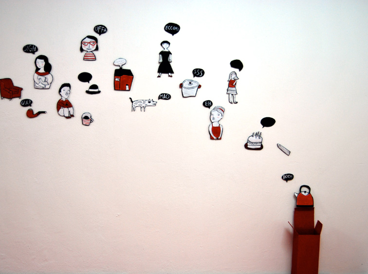 Sono piccole installazioni cartonate amovibili, minuscoli interventi di effimera durata documentati fotograficamente e pubblicati sul web per essere trasformati in indizi e tracciare una mappa online dei loro inaspettati avvistamenti. Spensierate teenagers corredate da ballon, mostrilli e casette sghembe, enormi teiere con tanto di pasticcini, sono alcuni degli innesti disseminati per le vie della città dall’illustratrice cagliaritana Giorgia Atzeni. Figurine ammiccanti che si palesano inattese dietro l’angolo o tra le pieghe dei palazzi nel riuscito tentativo di sorprendere e stimolare l’immaginazione. Innesti urbani da adottare o da lasciare al loro naturale corso ma anche da trasportare grazie all’intervento di chi si è preso la briga di trapiantarli nelle realtà urbane della penisola e all’estero.