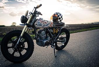 Introduced in 1998, the Honda CLR125 City Fly was launched as a dual-purpose motorcycle powered by a 124 cc SOHC single-cylinder engine. Dream Wheels Heritage in Porto enhanced the qualities of this little bastard and made a real funbike out of it. The paintjob is by Pitta Designs.