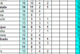 Appuntamento a martedì con la classifica marcatori ponderata definitiva per la stagione 2013/14, con il primo posto ormai assegnato ma almeno cinque giocatori (forse di più) in lizza per il secondo e il terzo gradino del podio.