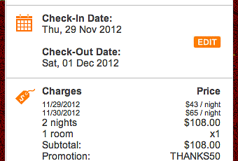 - Valido il 23 Novembre: THANKS50 per risparmiare 50$ su prenotazioni di 100$ o più.