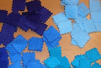 Ho tagliato quadretti di pannolenci di 1,5 cm. di lato e ho infilato usando la mia fantasia.Questo è il risultato...........