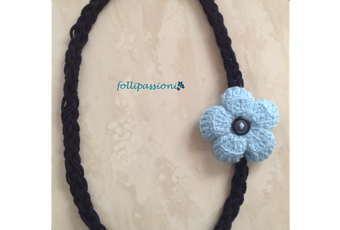 Collana leggerissima e totalmente anallergica...realizzata utilizzando la tecnica del finger knitting...ovvero il tubolare a maglia fatto con le dita...e impreziosita da un fiore crochet tono su tono...