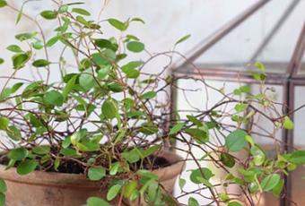 le foglioline tonde di Muehlenbeckia complexa, tanto sono esili i lunghi rami che le ospitano, l’insieme dona alla pianta un aspetto leggero che nasconde tuttavia un animo assai robusto.